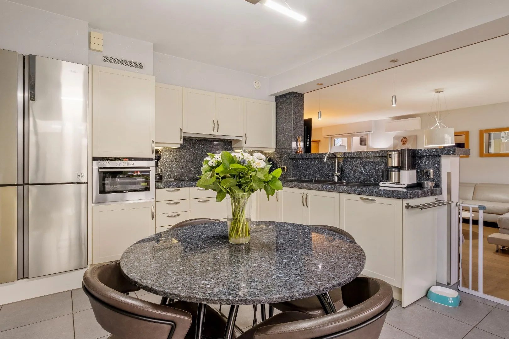 ✅ Volledig uitgeruste keuken met o.a. combi-oven, vaatwasser, frigo en diepvries Amerikaanse stijl, inductie kookplaat, dampkap, dubbele gootsteen en ontbijthoek met tafel en plaats voor 4 personen