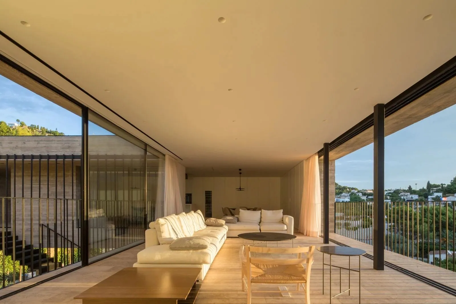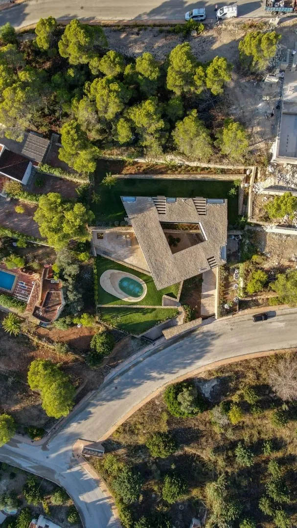 De woning is omringd door fantastische buitenruimtes met terrassen, een groot zwembad, chill-out zone en tuinen. Het is ontworpen om je een unieke woonervaring te bieden en elke dag van comfort, privacy en zon te genieten.