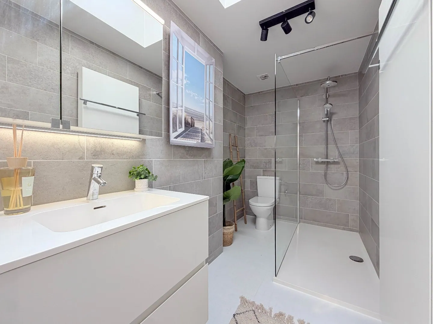 Naast de leefruimte een grote handige berging, badkamer met inloopdouche. Verder zijn er op het verdiep drie slaapkamers !