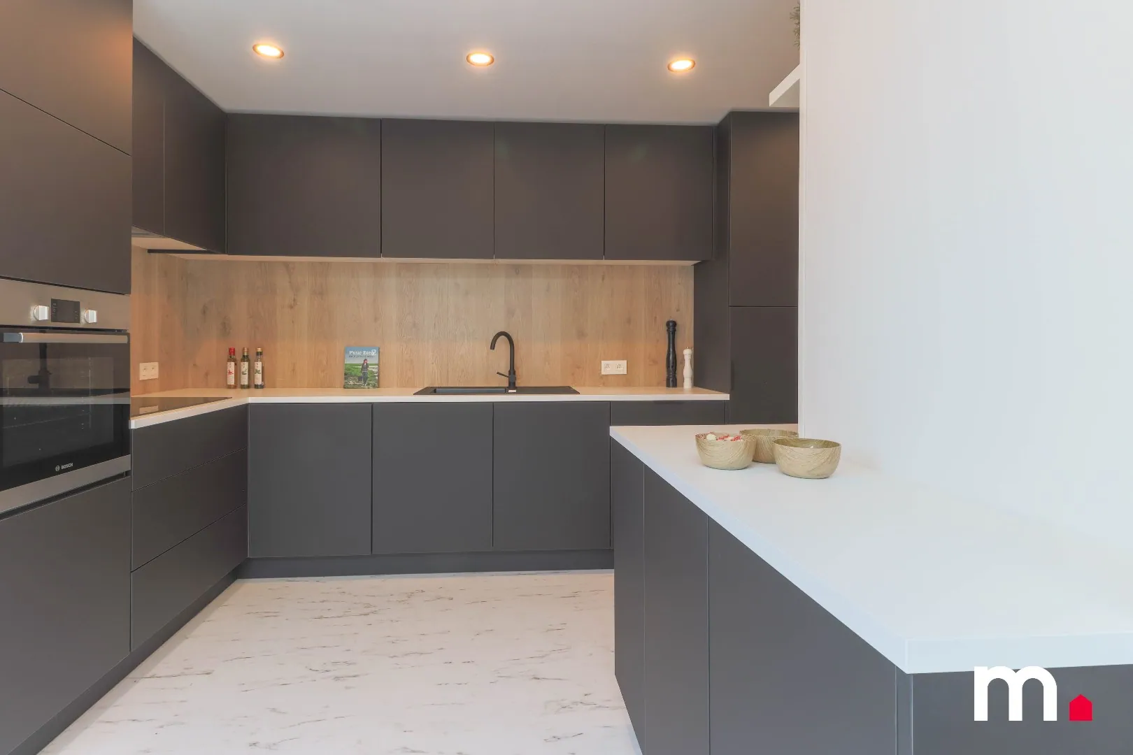 Nieuwe, volledig ingerichte keuken met moderne apparatuur
