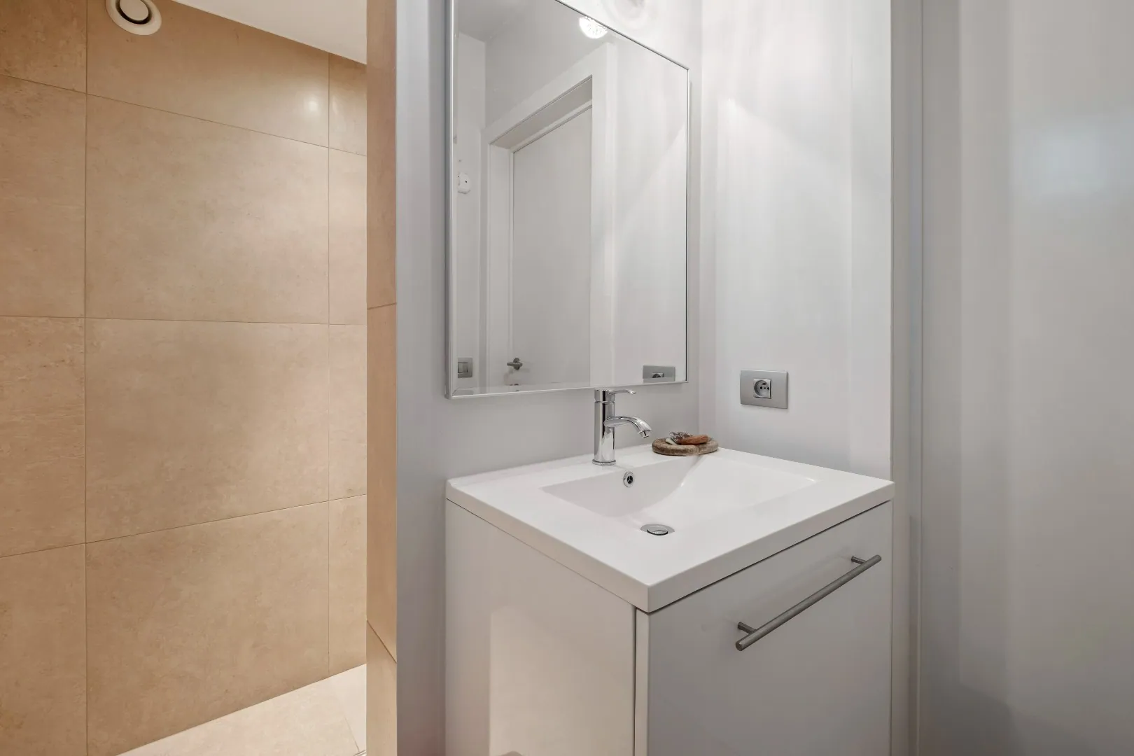 ✅ Apart toilet en 2de badkamer op het gelijkvloers voorzien van inloopdouche, lavabo met meubel en spiegel.