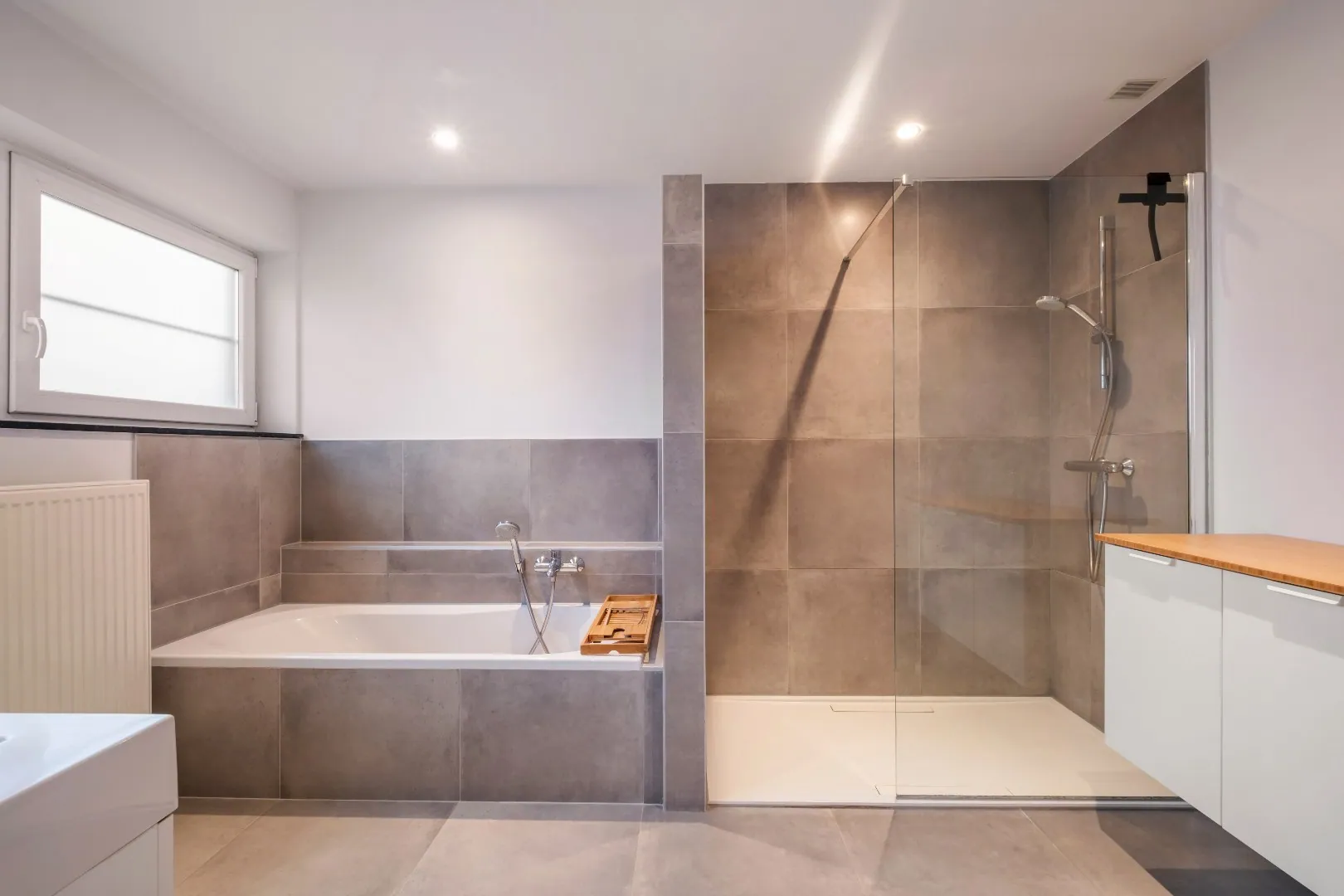 🛁 Moderne badkamer met ligbad, douche en lavabo