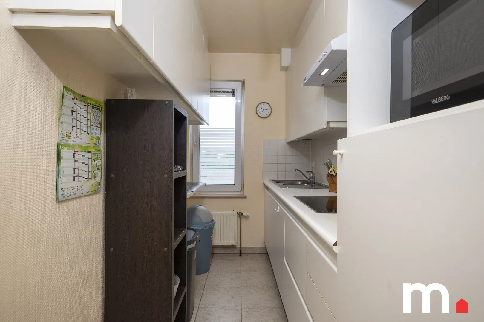 Het appartement beschikt over een lichtrijke leefruimte waar het aangenaam vertoeven is. De badkamer is uitgerust met een bad, dubbele lavabo en toilet. Verder zijn er twee volwaardige slaapkamers aanwezig.