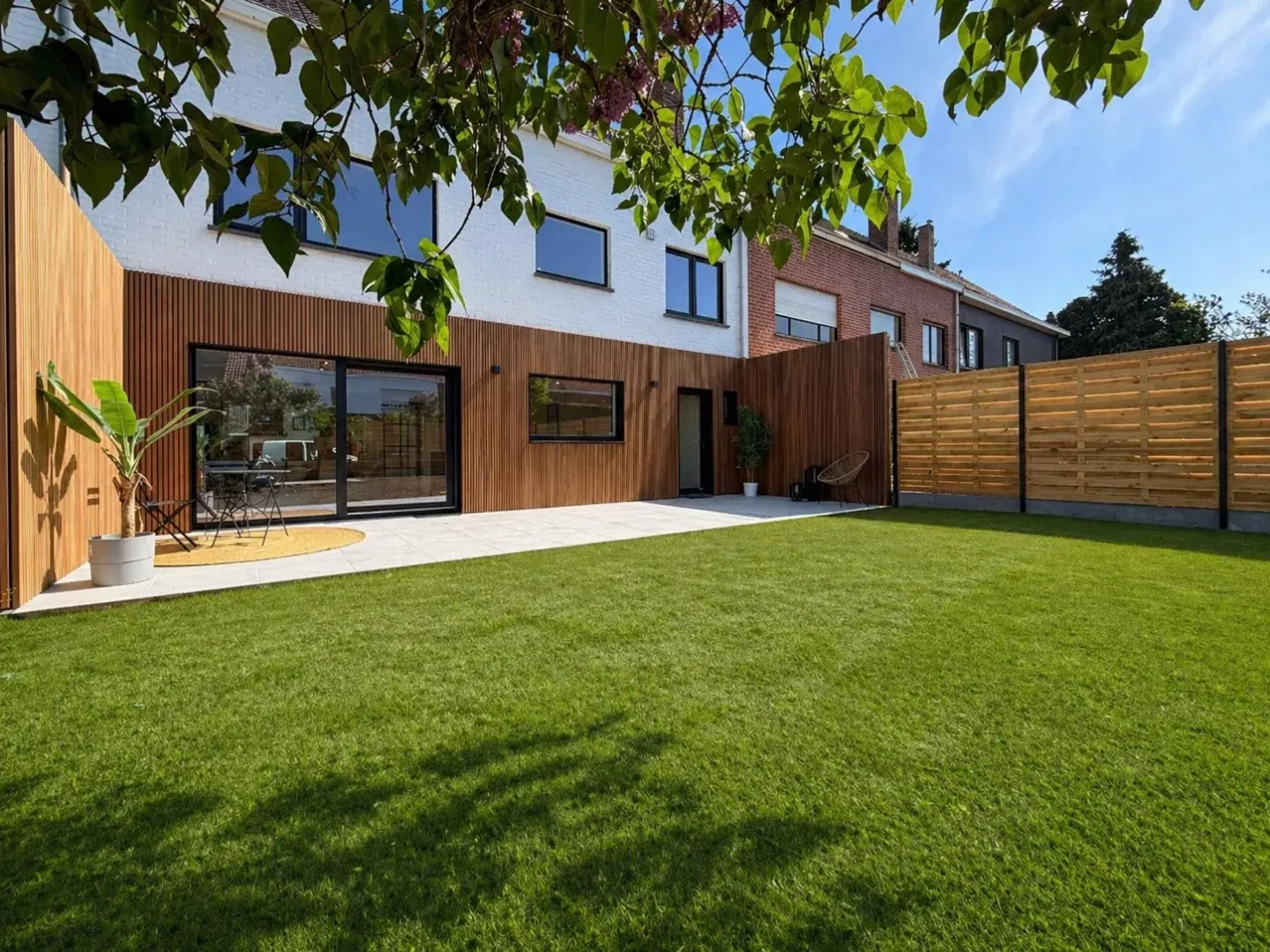 Ook buiten is het aangenaam vertoeven: de volledig aangelegde tuin met ruim terras vormt de ideale plek om te ontspannen of gasten te ontvangen. Voor extra comfort is er bovendien een garage met sectionale poort.