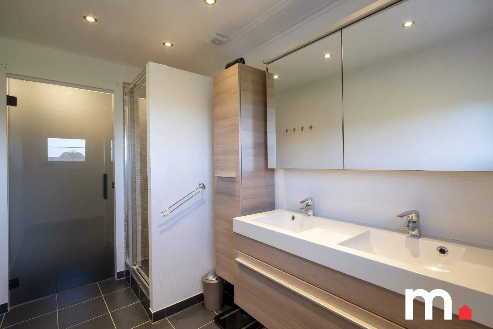 Op de eerste verdieping bevinden zich drie slaapkamers. De verzorgde badkamer is uitgerust met een douche en een dubbele wastafel.