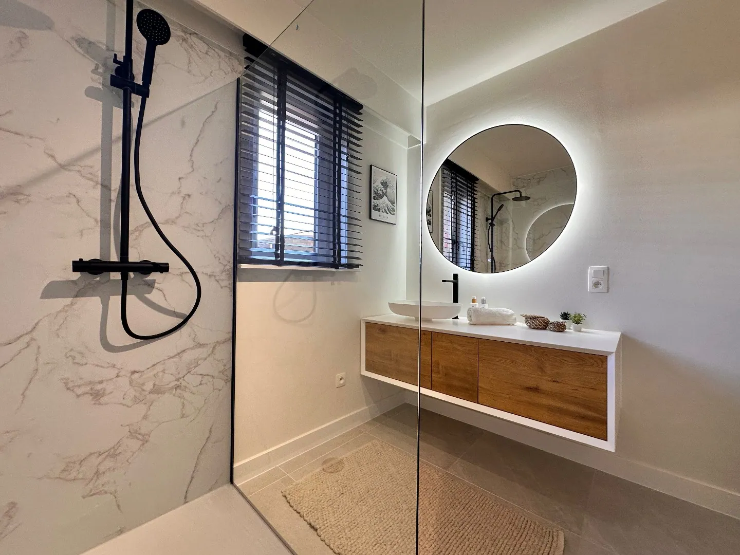 Binnenkomen doet u in de verzorgde inkomhal. Het appartement bevindt zich op het gelijkvloers en heeft een ruime gezellige inkomhal met aparte berging. De leefruimte is lichtrijk en aansluitend is er een volledig ingerichte keuken voorzien van alle comfort (frigo met vriesvak, kookplaat met dampkap, oven, vaatwasmachine). Ook is er een praktische 2 de berging bij de keuken. Het toilet is apart zodat uw gasten voldoende privé hebben. De grote badkamer is voorzien van een ruime inloopdouche, lavabo en vernieuwde energetische boiler. het appartement wordt verwarmd via warmtepompen die zowel kunnen verwarmen als koelen. Ideaal voor in zowel de zomer als in de winter.