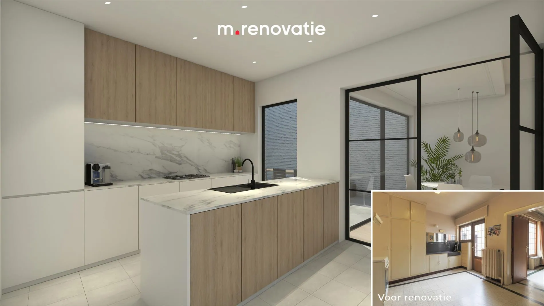 Wij bieden u onze unieke 'm renovatieformule ' aan : zorgeloos renoveren van A tot Z naar eigen smaak en binnen uw budget ! Maak gebruik van onze M renovatie-expert en bekijk alvast de sfeerbeelden binnen de mogelijkheden ! De aangegeven prijs is een richtprijs waarbij aankoop en renovatie vervat zijn ! Bel ons alvast voor meer informatie !