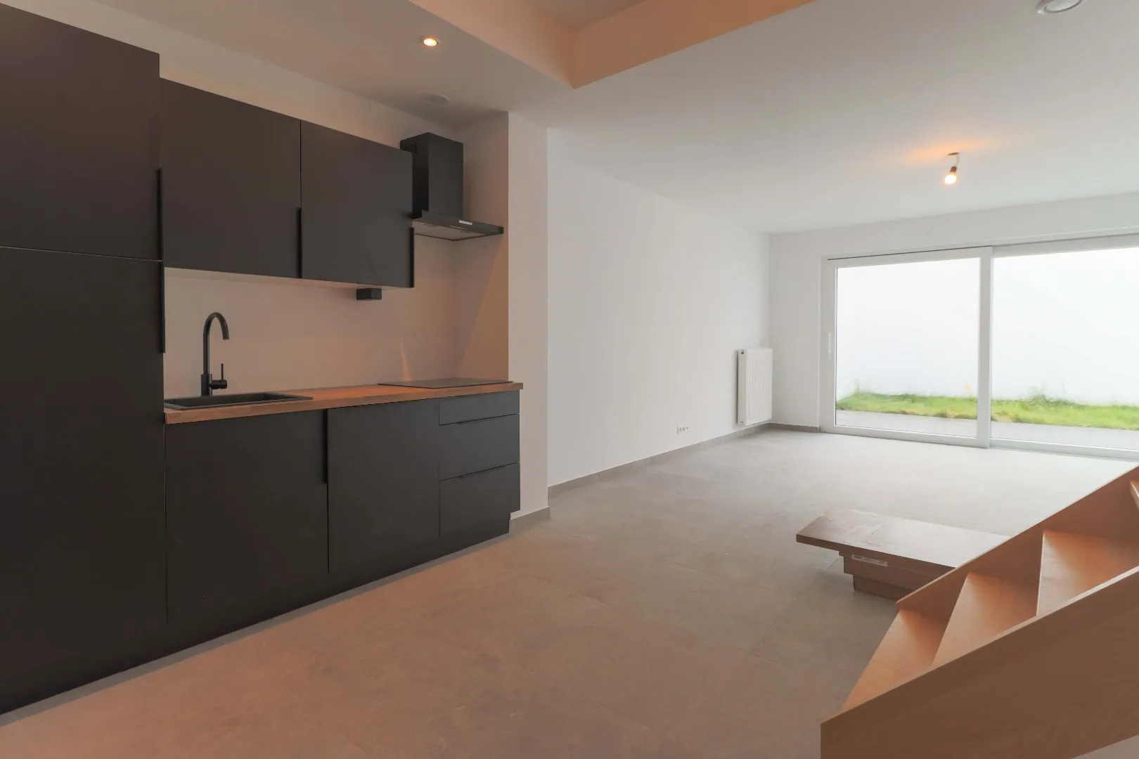 Leuke lichtrijke leefruimtes voorzien van ingerichte keuken met alle comfort uitkijkend op de aangename stadstuin met terras !