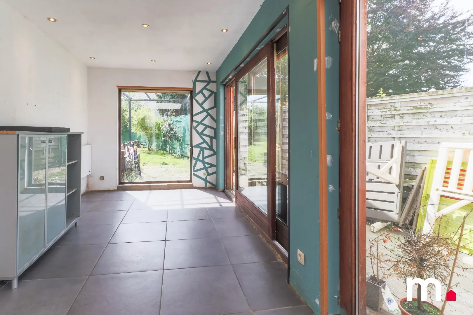 * 2 de ingang rechts van de woning (ideaal voor fietsen en toegang tot de tuin)