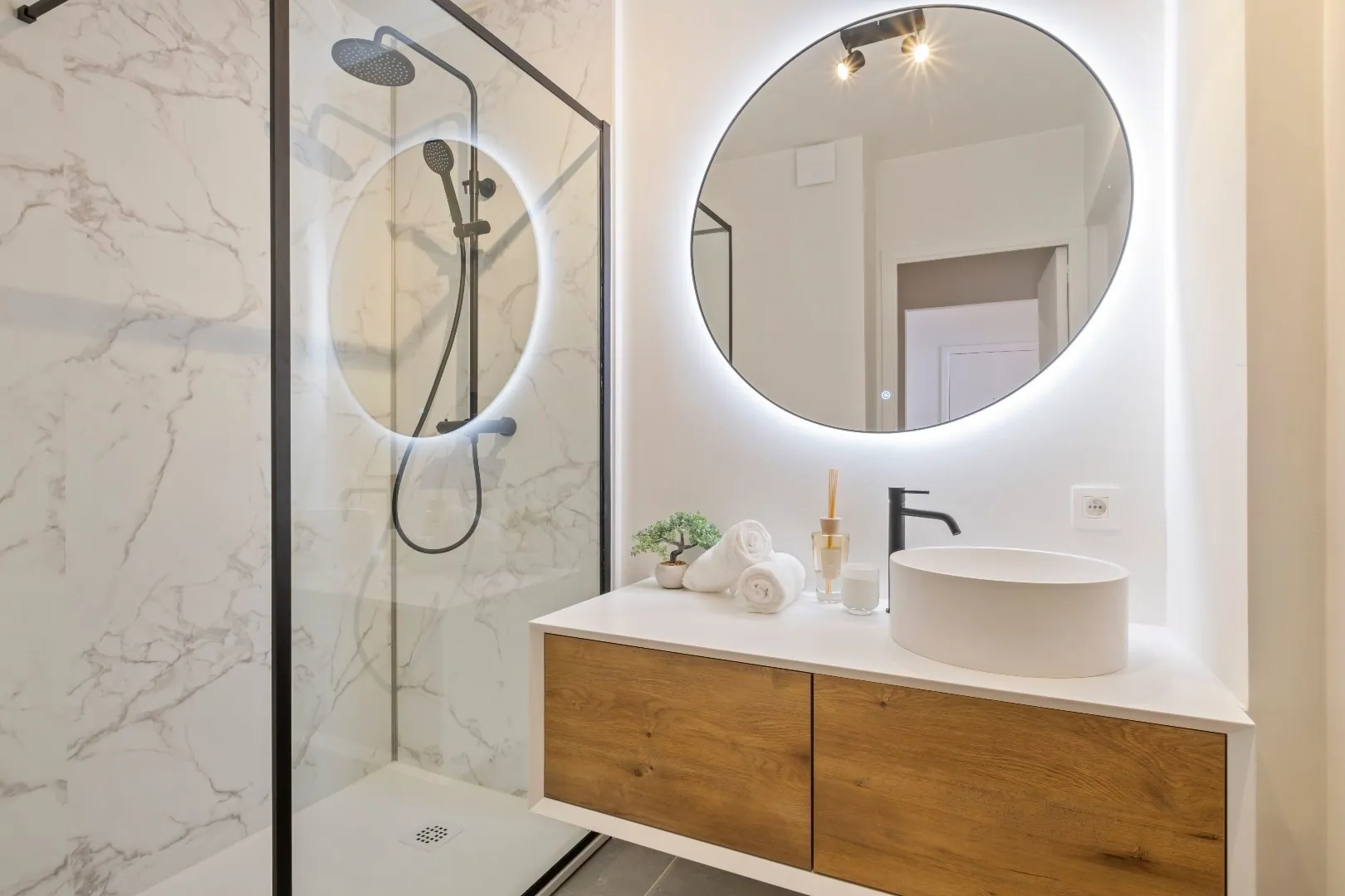 Verder hebben we een mooie badkamer met inloopdouche, en lavabo. Er is een apart toilet voorzien.