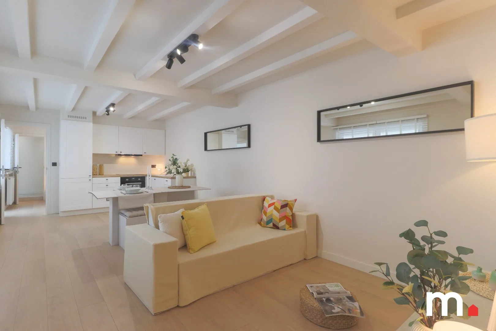 U komt u binnen in de inkomhal. Op het gelijkvloers vindt u dit volledig afgewerkt 1-slaapkamer appartement.