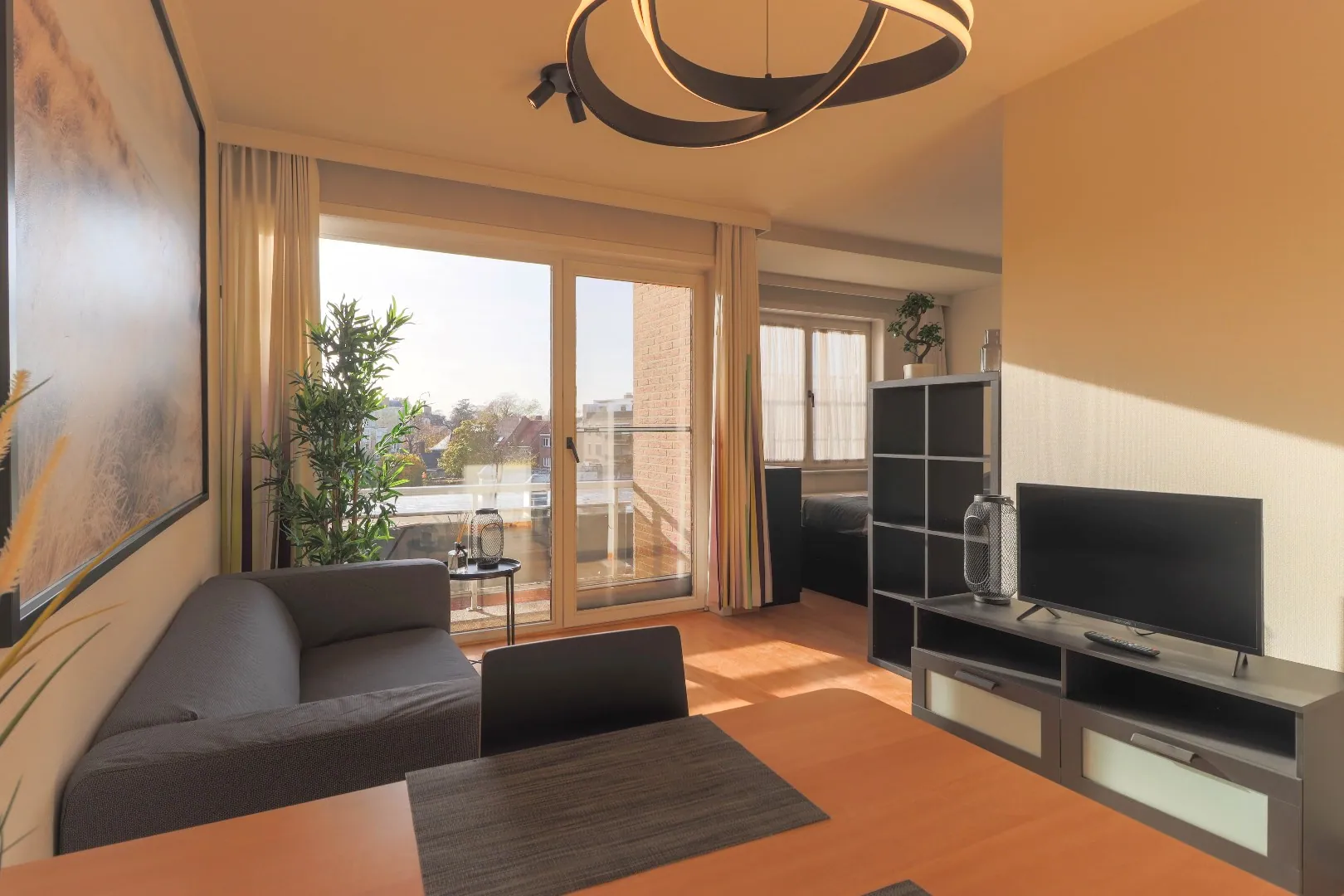 Vlak voor het station te Kortrijk vinden we deze cosy, gezellige appartementje met zonnig terras ! Gelegen op het derde verdiep met een aangenaam terras en leuk zicht op groen in het midden van de stad !