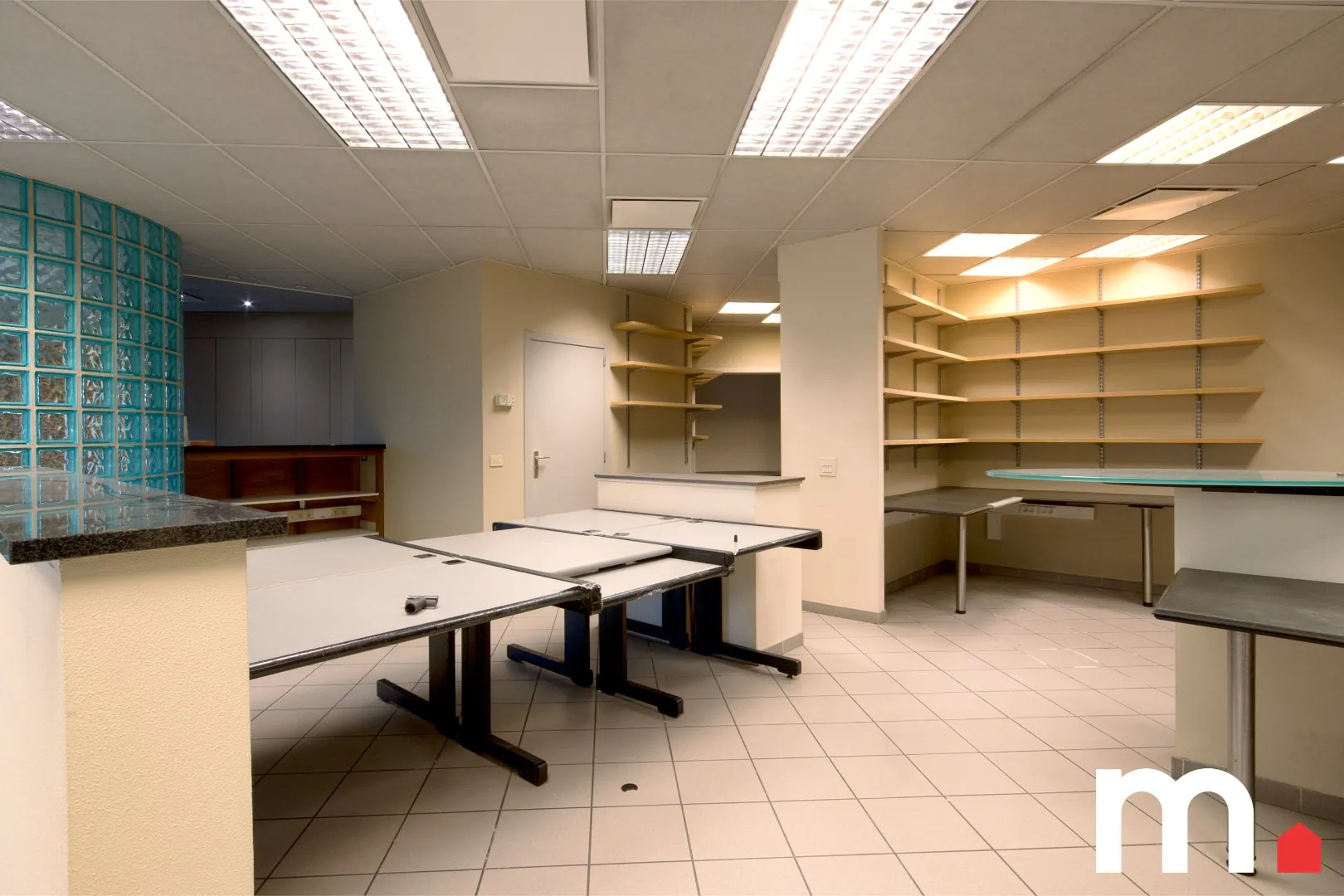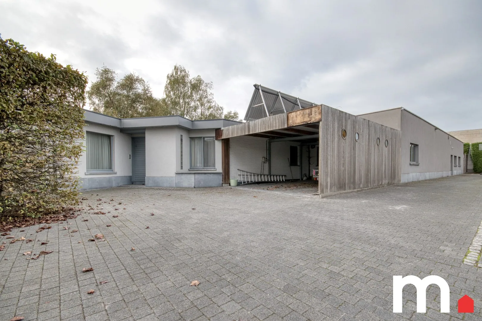 Aangrenzend bevindt zich een afzonderlijke vleugel van ca. 160 m² met meerdere kantoorruimtes, stockage en sanitair. Deze kan eenvoudig herbestemd worden tot magazijn, praktijk of ander professioneel gebruik, afhankelijk van de wensen van de toekomstige eigenaar. Dankzij de slimme indeling blijven privé- en werkzone helder gescheiden en toch logisch verbonden