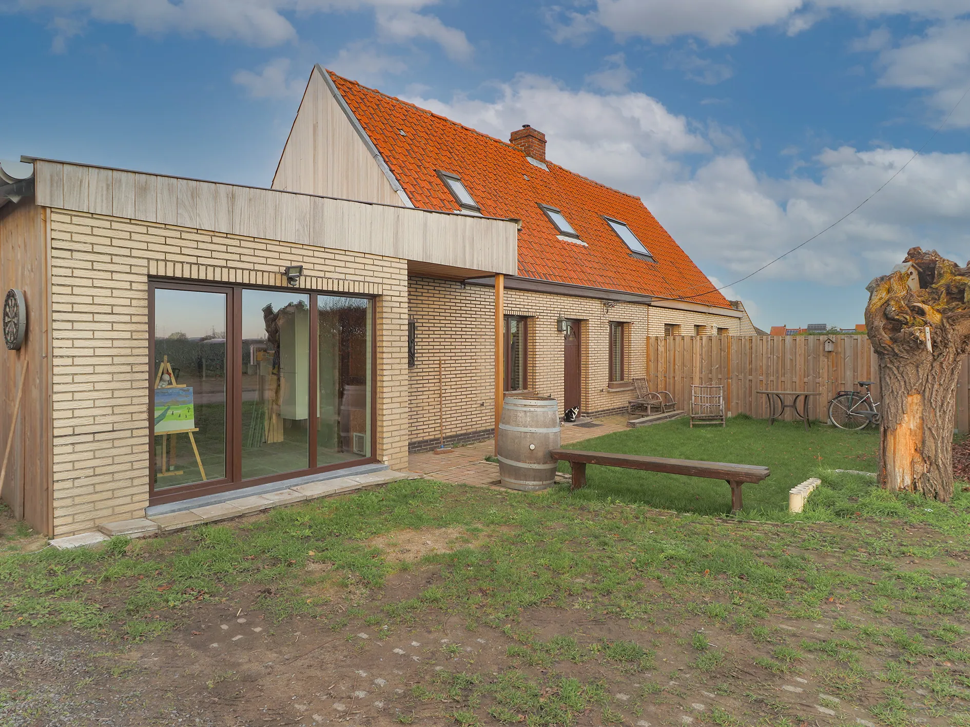 Tussen de prachtige velden vinden we een charmante halfopen bebouwing.