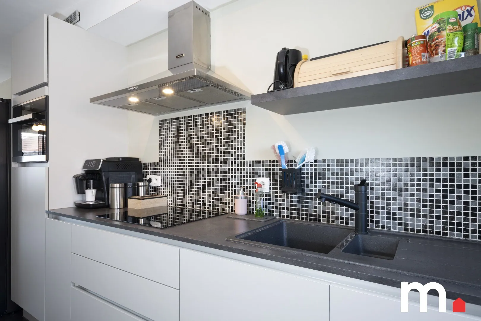 ✅ Ingerichte open keuken voorzien van koelkast, vaatwas, oven, elektrisch koken, dampkap en veel kastruimte