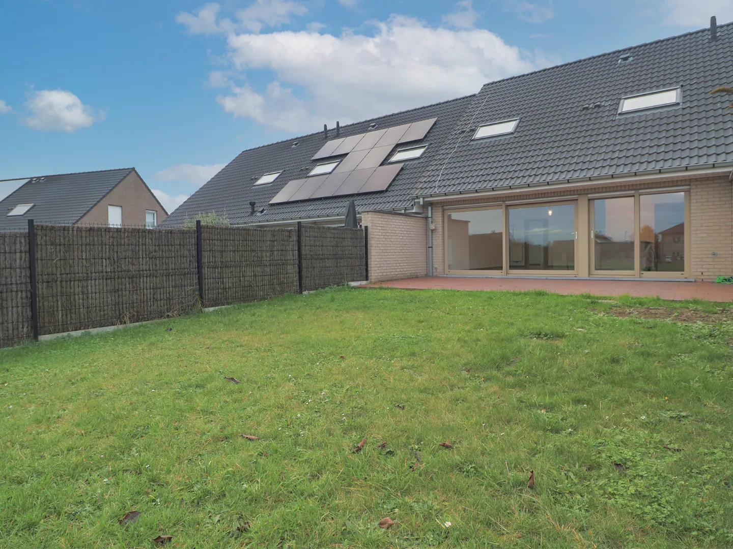 Buiten vinden we een betegeld terras van 22m² evenals een mooie, onderhoudsvriendelijke en zongerichte tuin. Bovendien, geniet je in de tuin van het zicht op de prachtige velden.