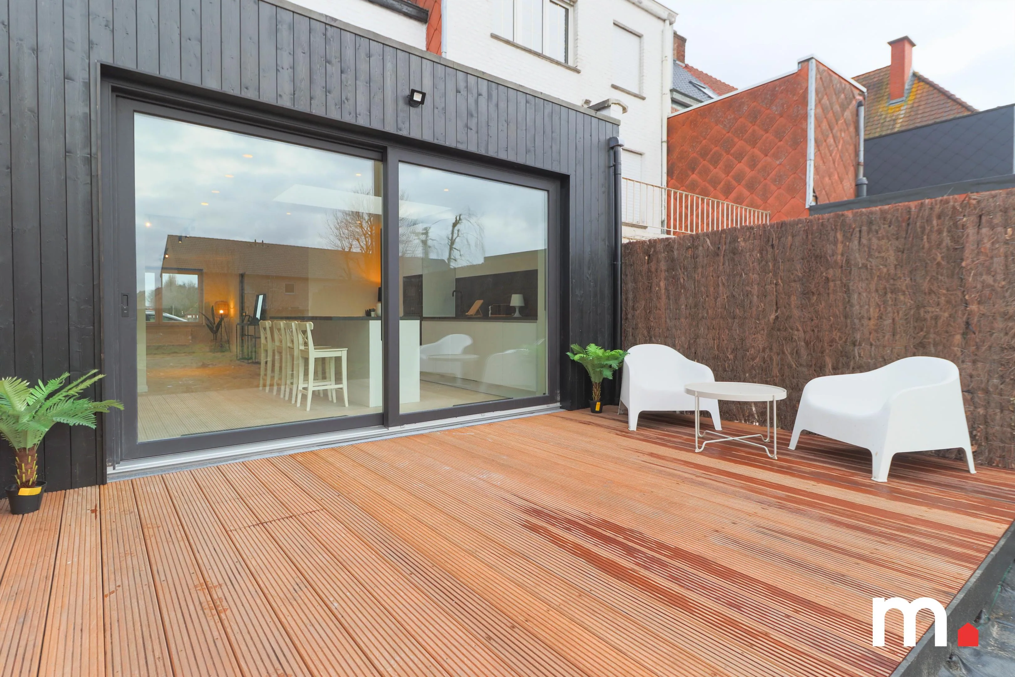 In de tuin werd een terras aangelegd waar u kan genieten van een stralend zonnetje. De verdere indeling van de tuin is aan de nieuwe eigenaars. Zij kunnen deze inrichten naar hun eigen smaak. Mogelijkheden zijn er alleszins!