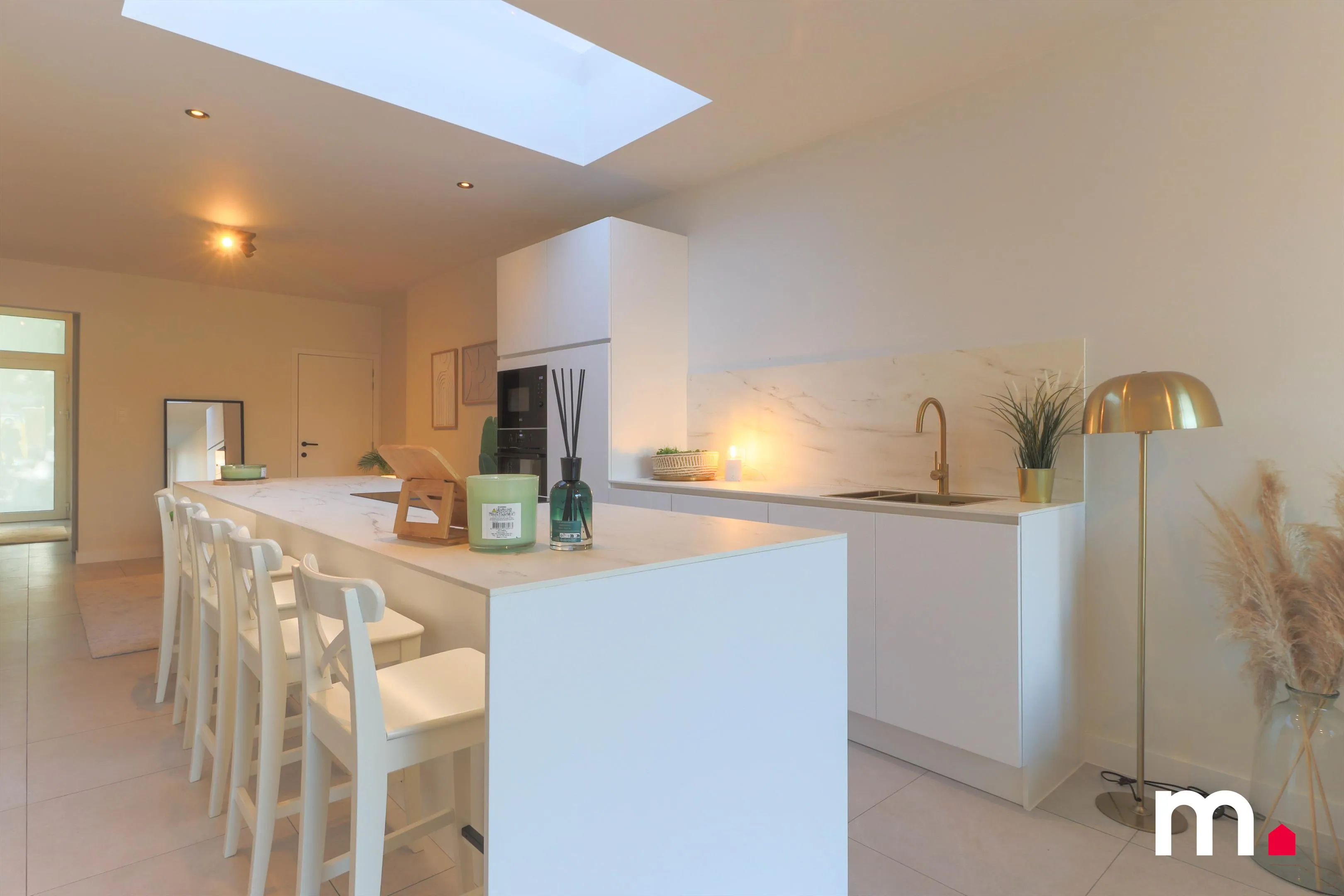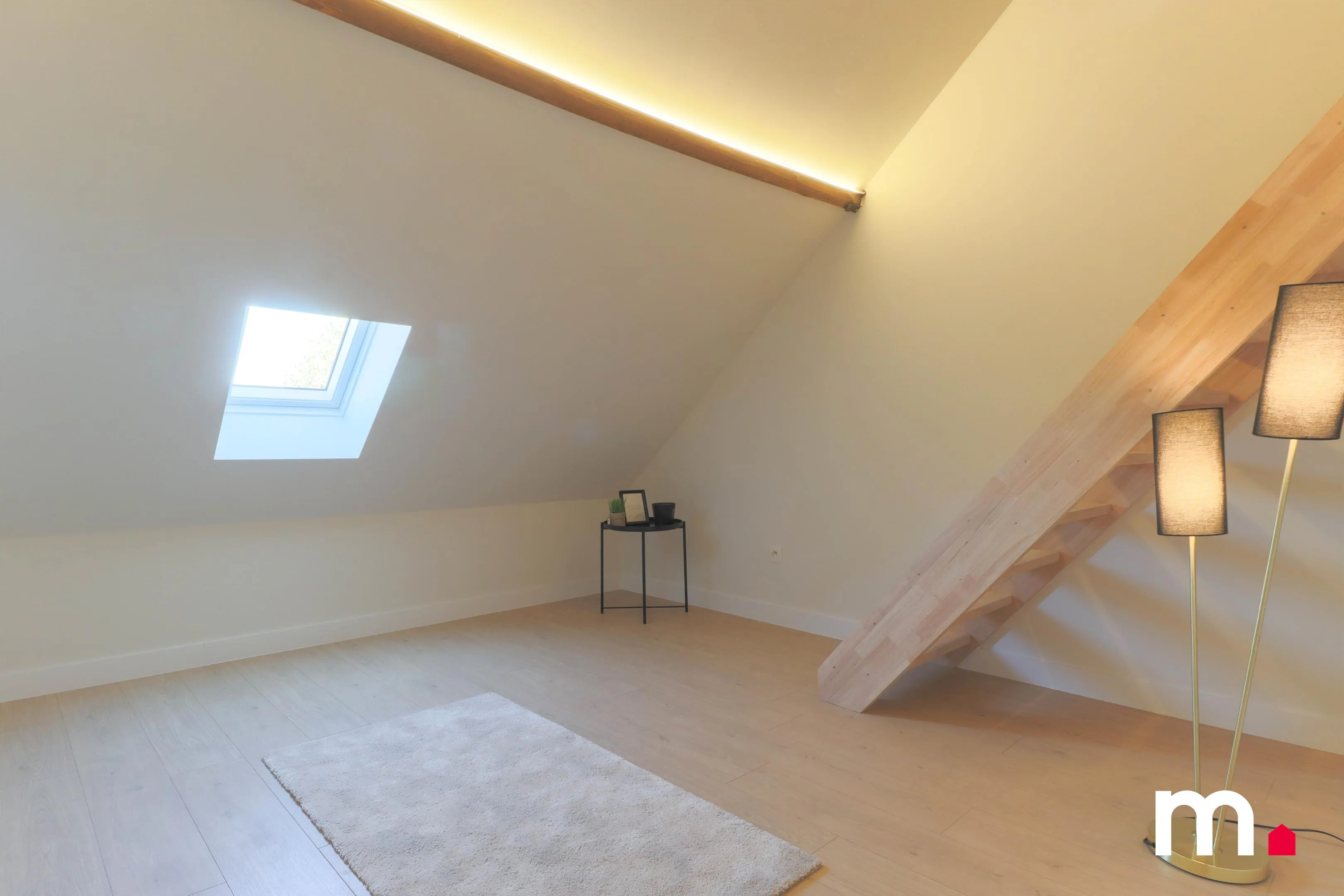 Tot slot is de woning volledig geschilderd in het wit, waardoor elke kamer stijlvol ingericht kan worden en toffe accenten kunnen gelegd worden. Dankzij deze totaalrenovatie is het huis instapklaar en vormt het de ideale plek voor wie op zoek is naar een stijlvolle en duurzame thuis in Kortrijk.