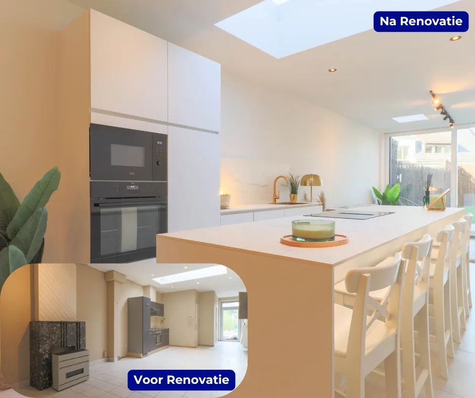 De keuken vormt met zijn strakke, moderne uitstraling een echte blikvanger. Uitgerust met de nieuwste toestellen en werkruimte. Aansluitend is leefruimte terug te vinden, vroeger totaal niet aantrekkelijk, maar nu omgetoverd tot een leuke plaats om tot rust te komen.