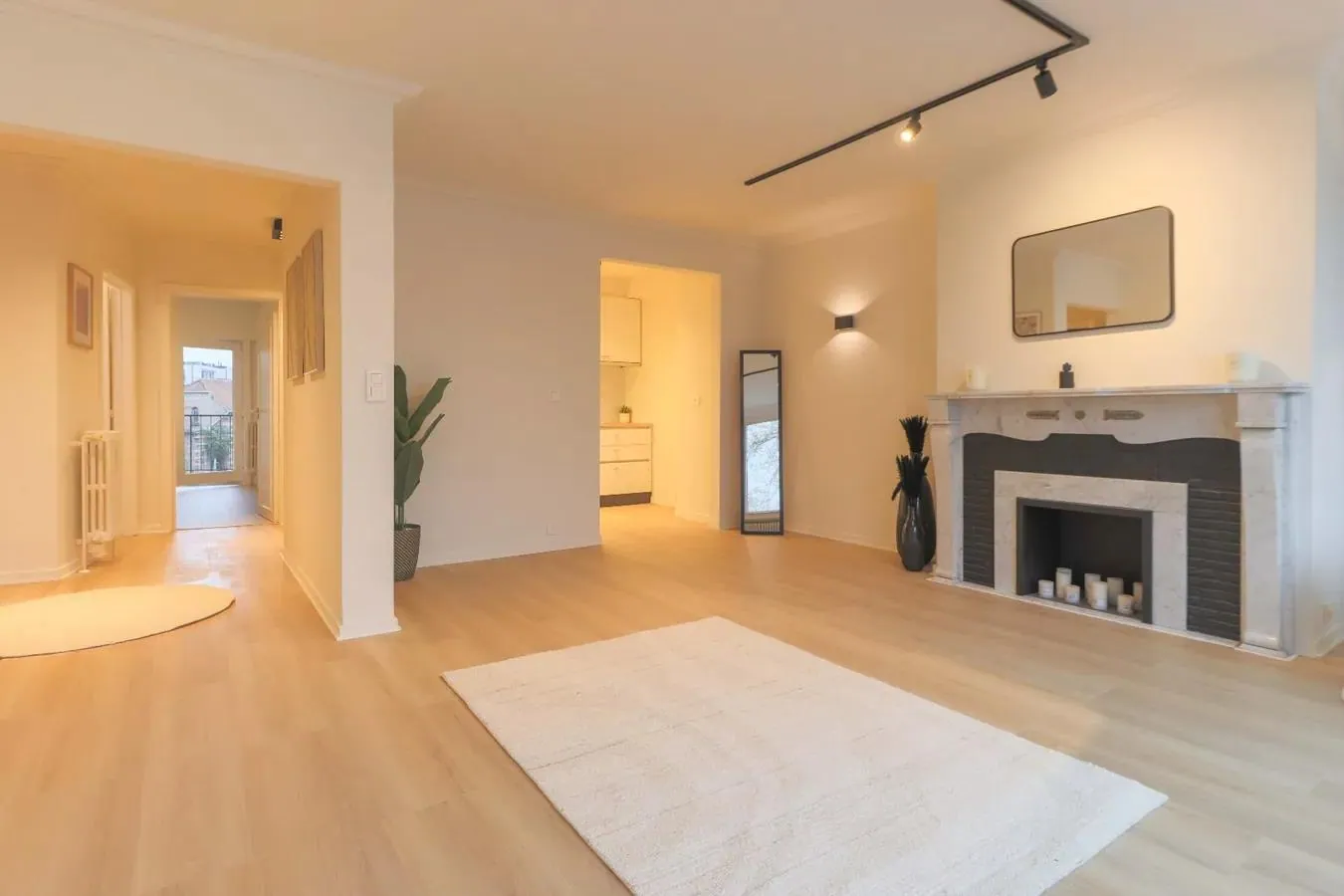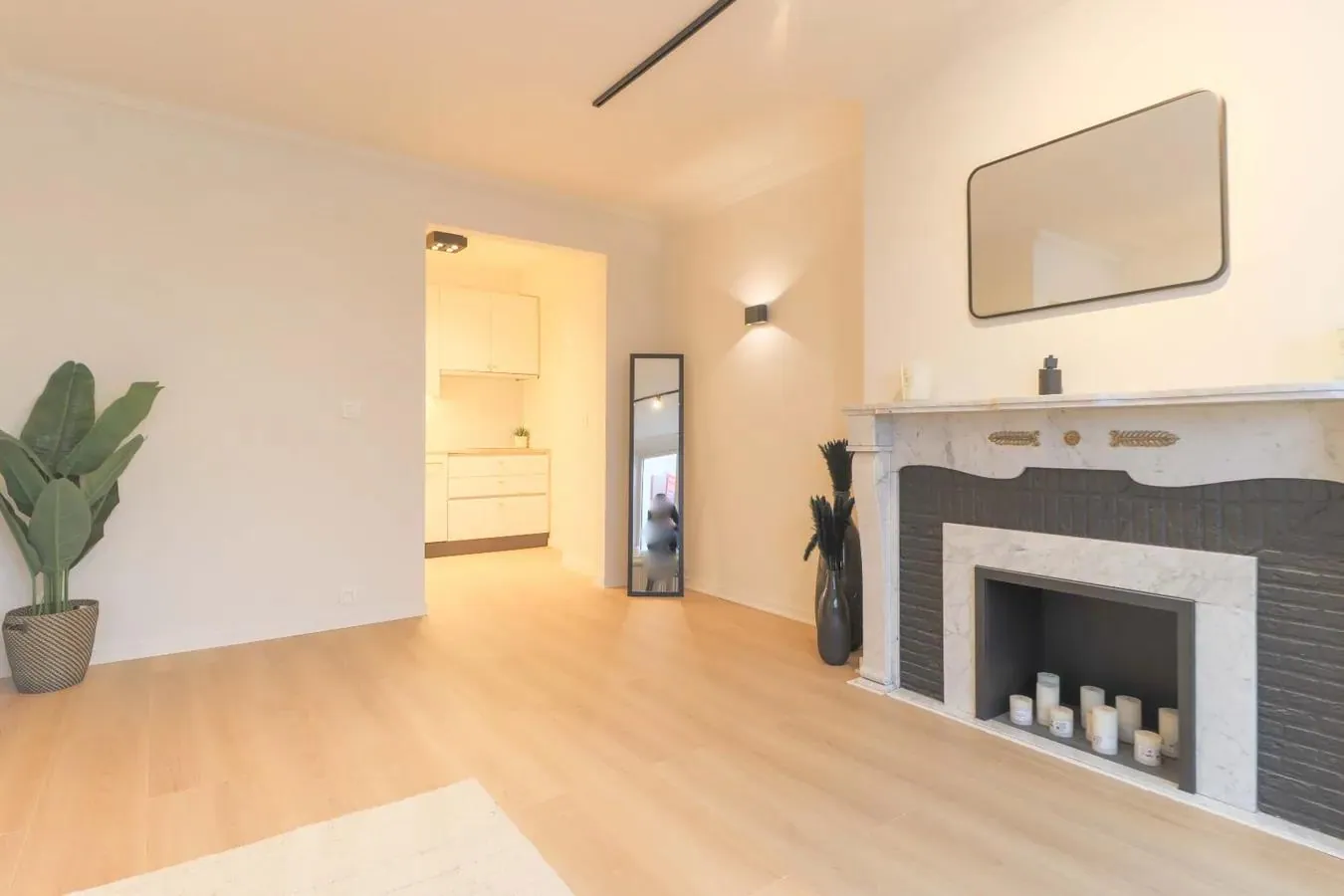 Bij binnenkomst word je meteen verwelkomd door een aangename leefruimte met veel natuurlijke lichtinval. De originele elementen, zoals de stijlvolle vloeren en prachtige schouw vormen een prachtig contrast met de moderne afwerking. De keuken en badkamer werden volledig vernieuwd, waarbij gekozen werd voor strakke lijnen en hoogwaardige materialen.