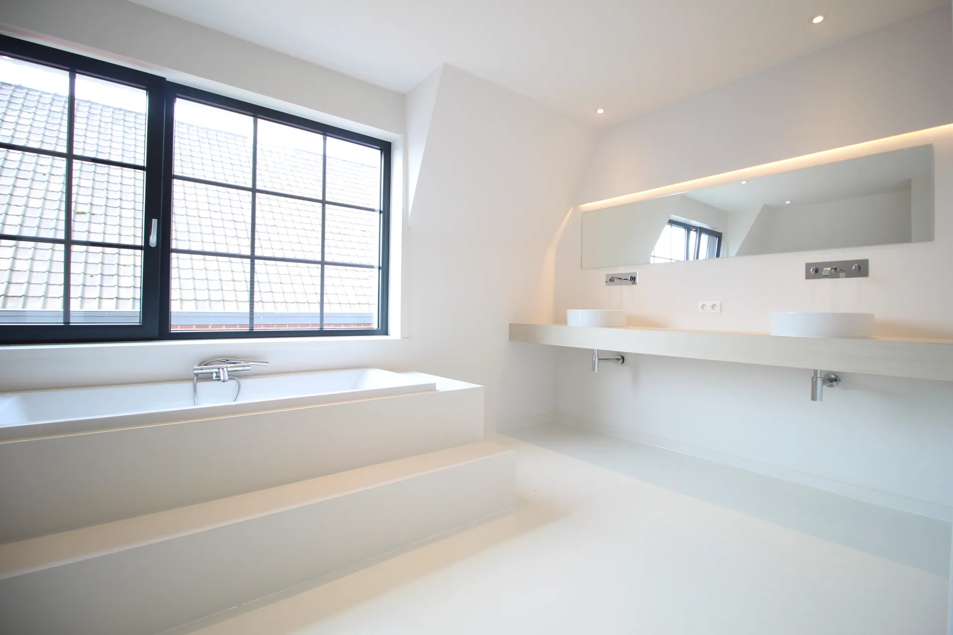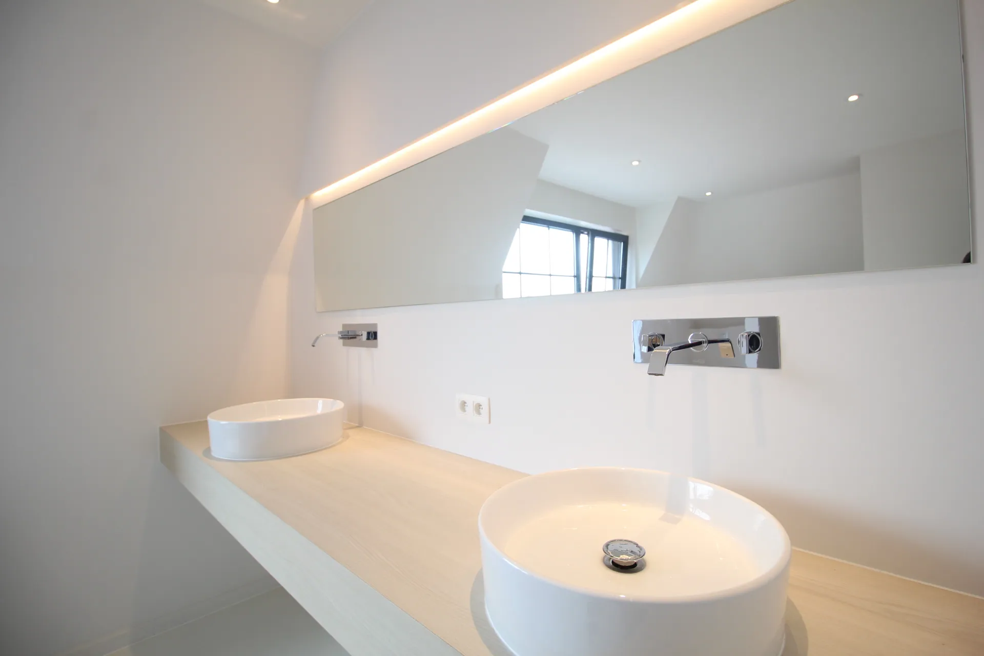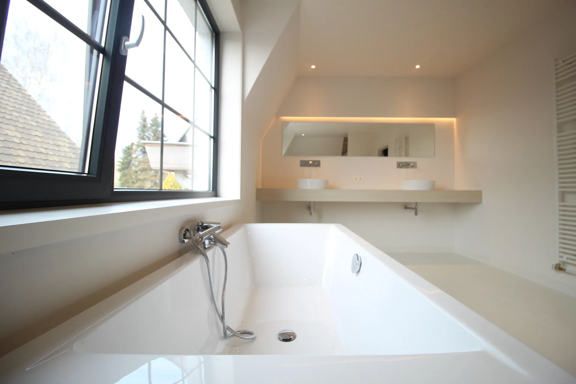De luxueuze badkamer is een ware oase van ontspanning. Met een ruime inloopdouche, een vrijstaand bad en elegant sanitair, biedt deze badkamer alles wat u nodig heeft om tot rust te komen na een lange dag. De gebruikte materialen stralen kwaliteit uit en creëren een gevoel van luxe en comfort.
