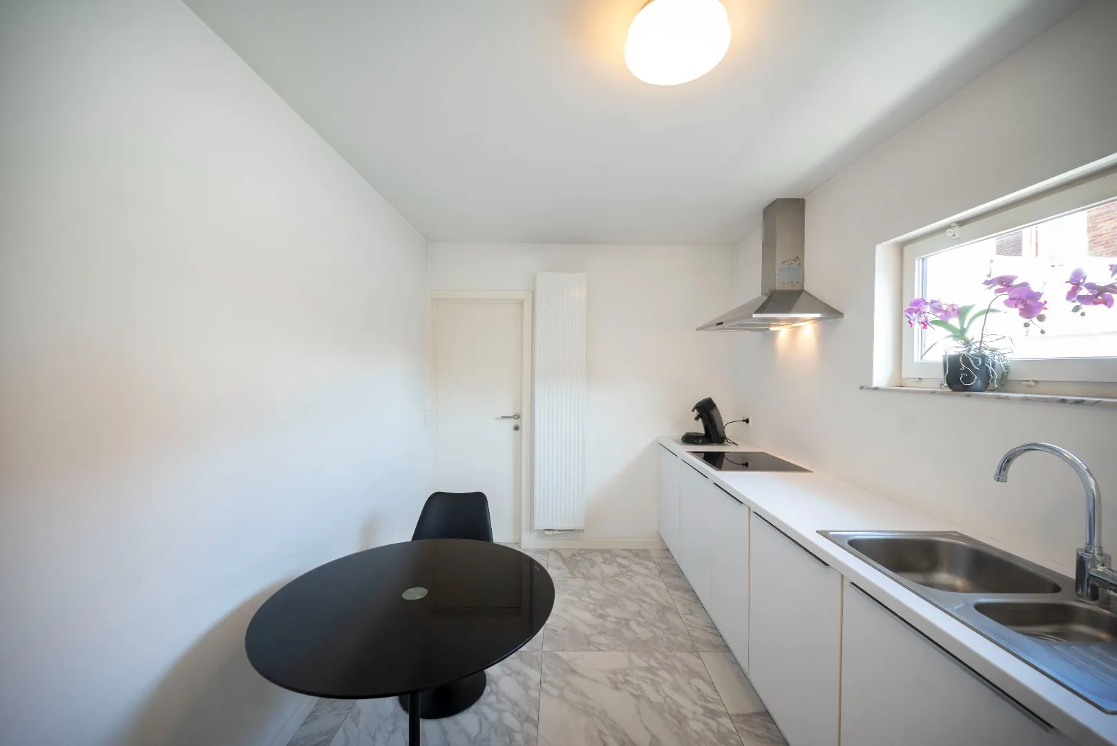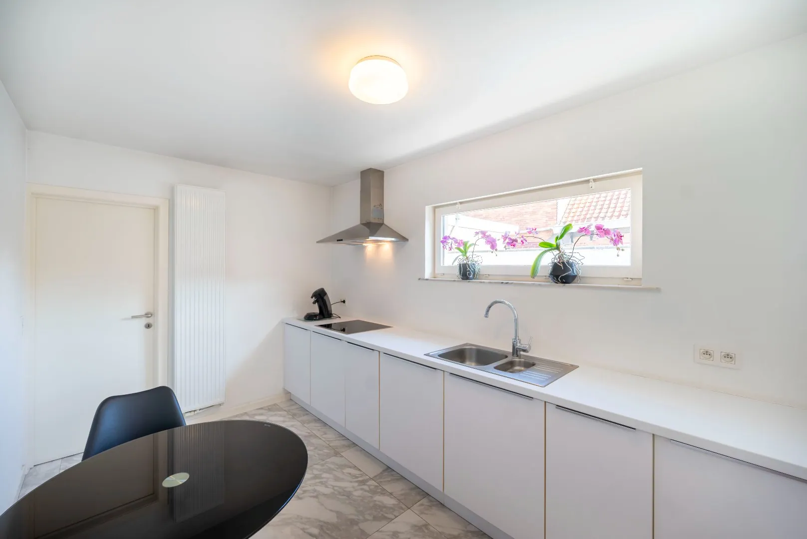 Bij het binnenkomen betreed je de leefruimte aan de voorzijde van de woning. Aansluitend vind je een aangename en lichtrijke eetplaats die naadloos overgaat in de keuken. Vanuit deze open leefruimte heb je een mooi zicht op de onderhoudsvriendelijke binnentuin.