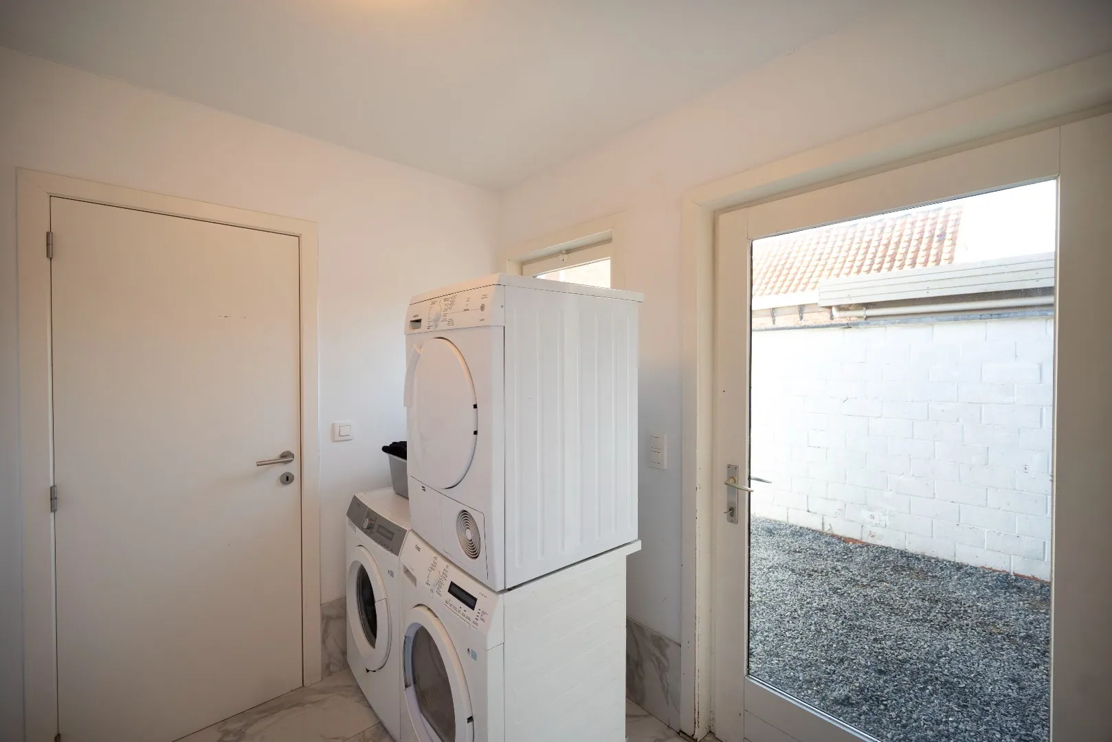 Op het gelijkvloers is er bovendien een handige berging/wasplaats aanwezig. Achteraan bevindt zich de garage, wat samen met de parkeermogelijkheden voor de deur een duidelijke meerwaarde biedt voor zowel bewoners als bezoekers.
