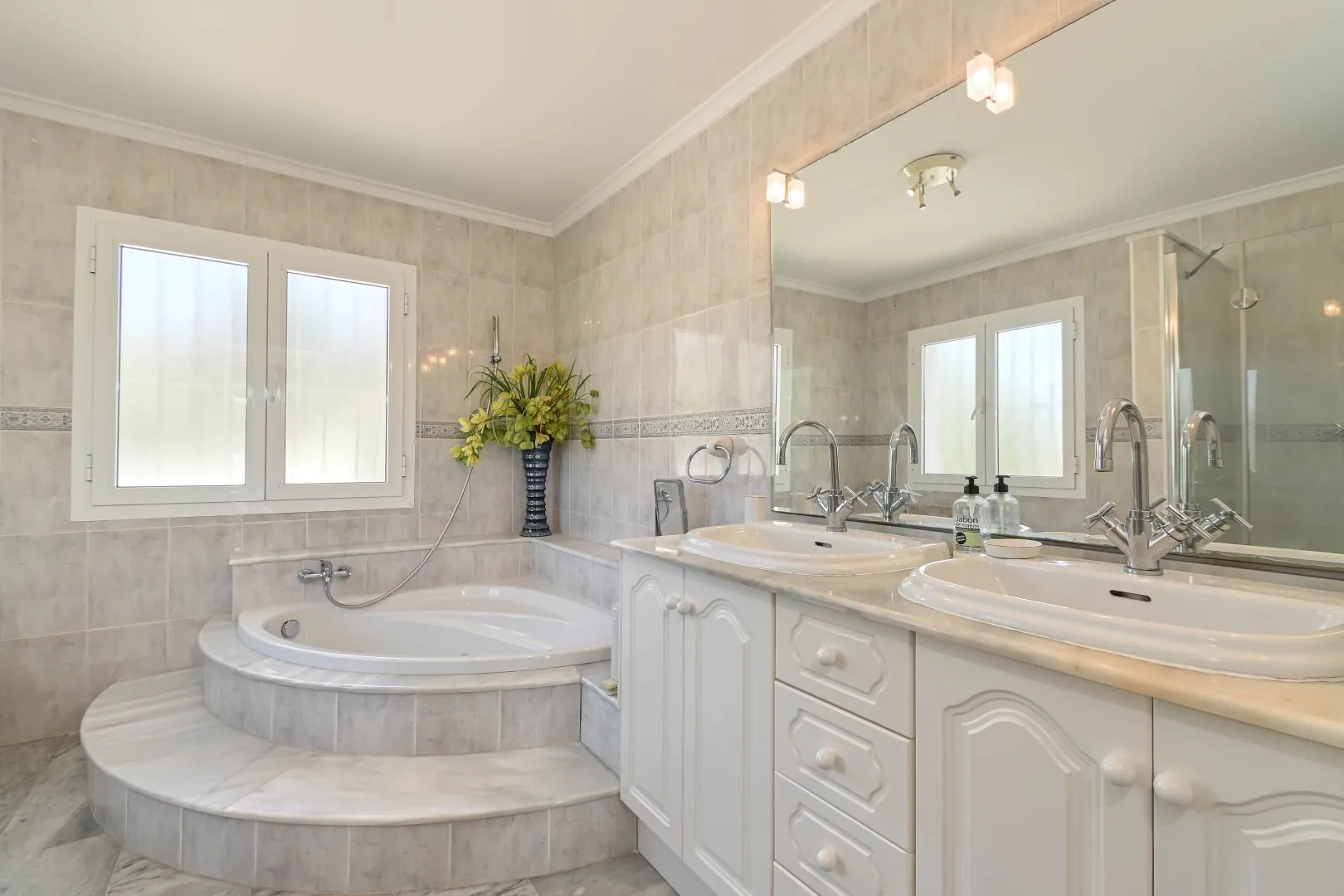 De bestaande woning biedt een bebouwde oppervlakte van 284 m² en beschikt over 5 slaapkamers, 3 badkamers, een garage en ruime leefruimtes – een perfecte basis voor een volledige renovatie, met behoud van de charmante mediterrane stijl.