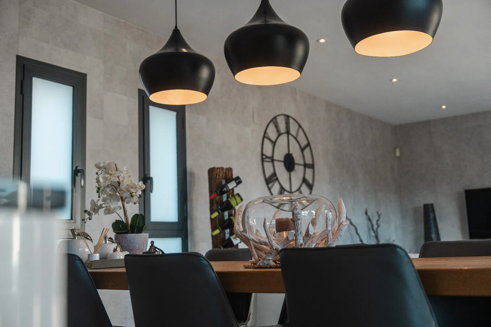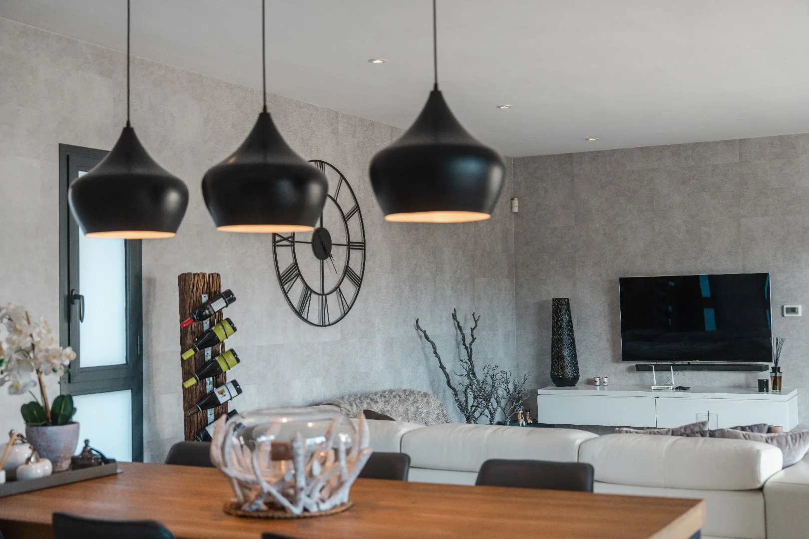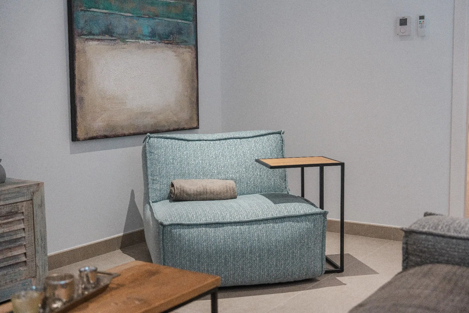De woning is verdeeld over twee verdiepingen, waarbij de hoofdleefruimte zich op het bovenste niveau bevindt. Hier bevindt zich een ruime en lichtrijke living die naadloos aansluit op het terras en het zwembad. Dit verdiep vormt het kloppend hart van de woning, waar binnen- en buitenleven perfect in elkaar overlopen. De open indeling en grote raampartijen zorgen voor een gevoel van ruimte en connectie met de buitenomgeving.