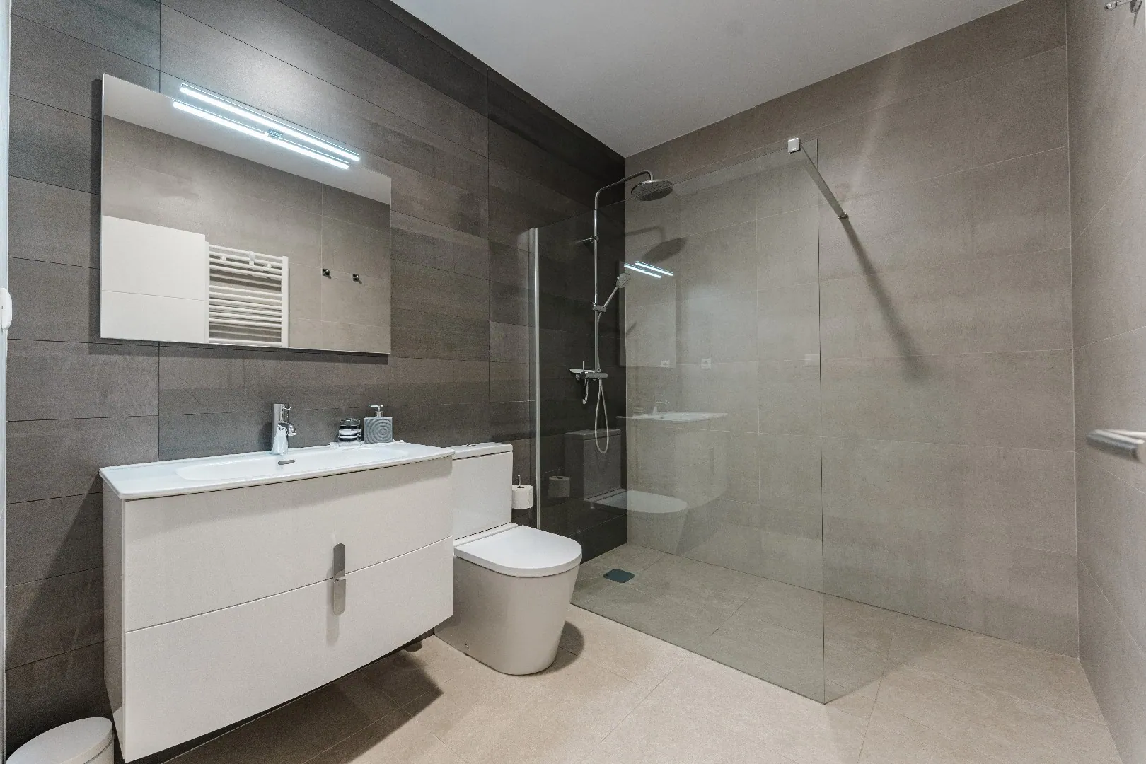 Op dit niveau bevinden zich ook drie comfortabele slaapkamers en twee moderne badkamers, waaronder een master bedroom met en-suite badkamer. Alle ruimtes zijn afgewerkt met kwalitatieve materialen en werden praktisch en doordacht ingericht, wat bijdraagt aan het hoge wooncomfort.