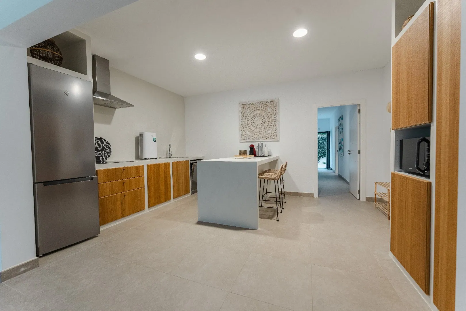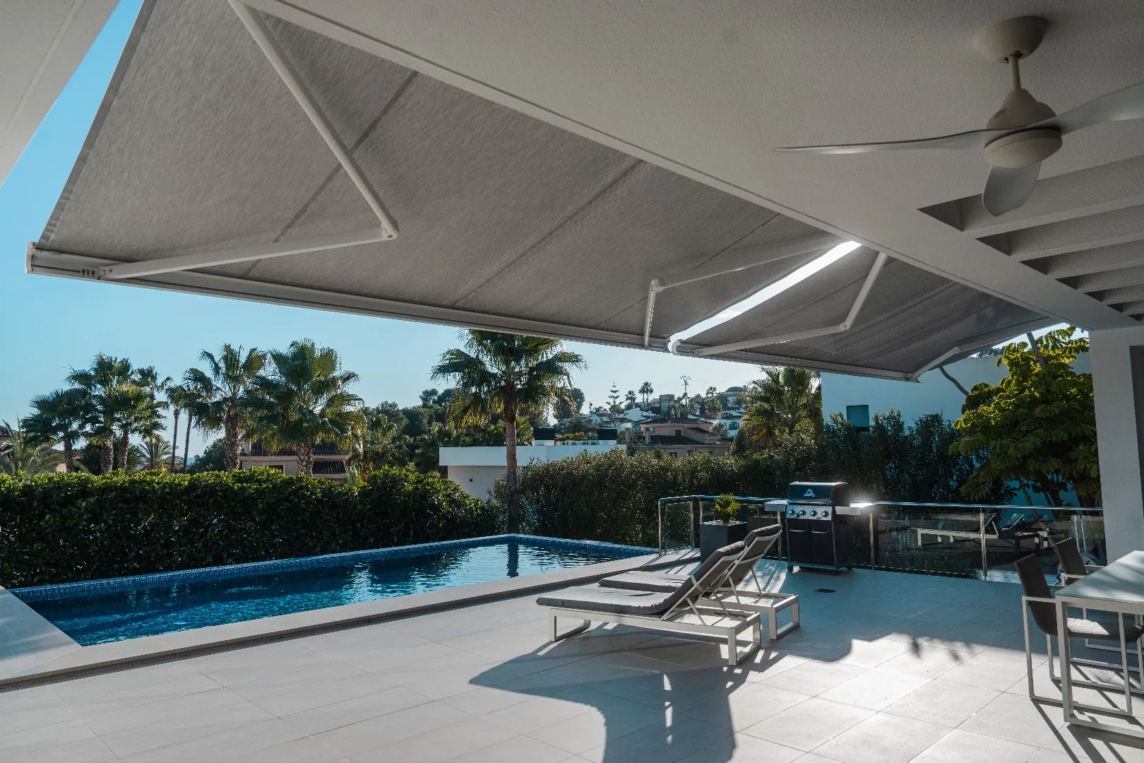 De buitenruimte biedt volledige privacy en is perfect ingericht om het hele jaar door te genieten. Het verwarmde zwembad maakt het mogelijk om in elk seizoen te ontspannen en te genieten van het zonnige klimaat. Aansluitend aan de keuken bevindt zich een overdekte buitenkeuken, wat zorgt voor extra comfort en gebruiksgemak en ideaal is voor gezellige diners en lange avonden met familie en vrienden.