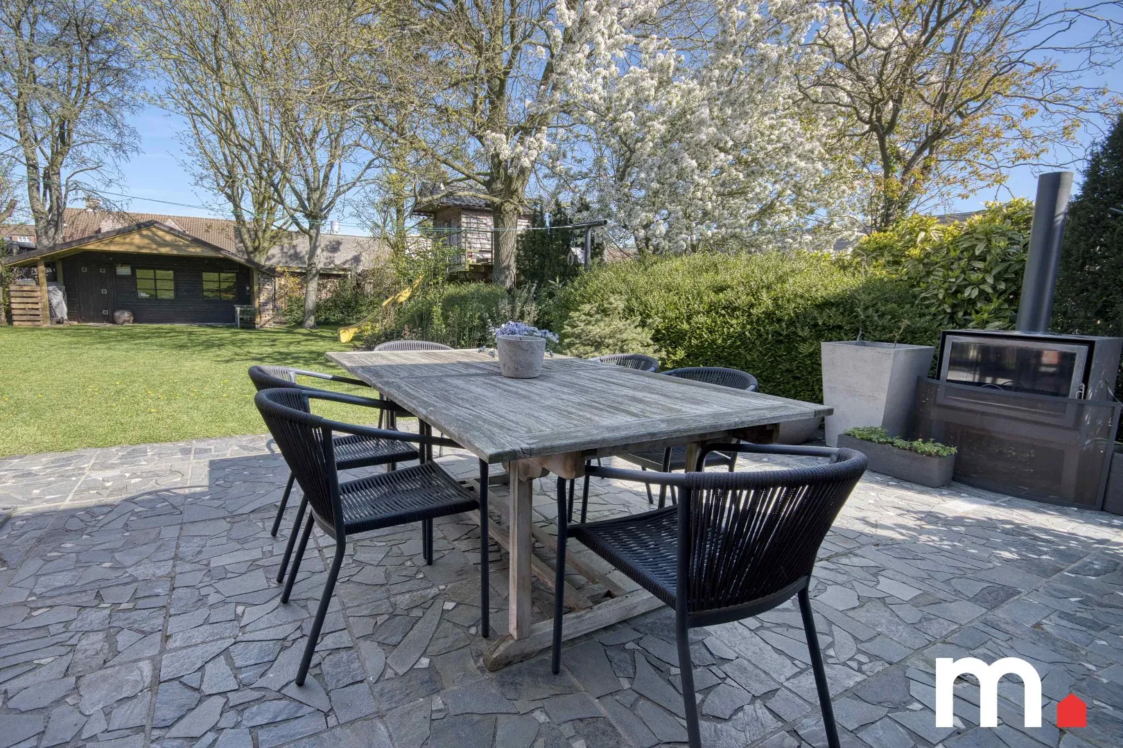 Een absolute troef is de prachtige tuin, compleet met een luxe boomhut en een gezellig buitenhuisje — ideaal om te genieten van lange zomeravonden.