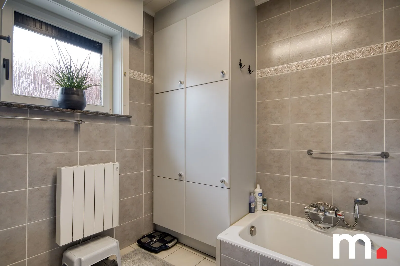Deze eigendom heeft een praktische indeling en een aangename lichtinval. De woning beschikt over 4 volwaardige slaapkamers, ideaal voor gezinnen of wie extra ruimte wenst voor bureel of hobbykamer. Het pand beschikt eveneens over 2 garages, waarvan één uitzonderlijk ruim is en perfect voor opslag of zelfstandige activiteit.