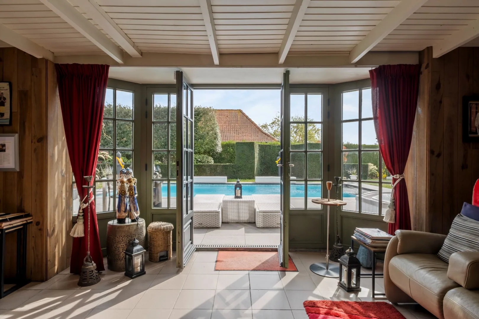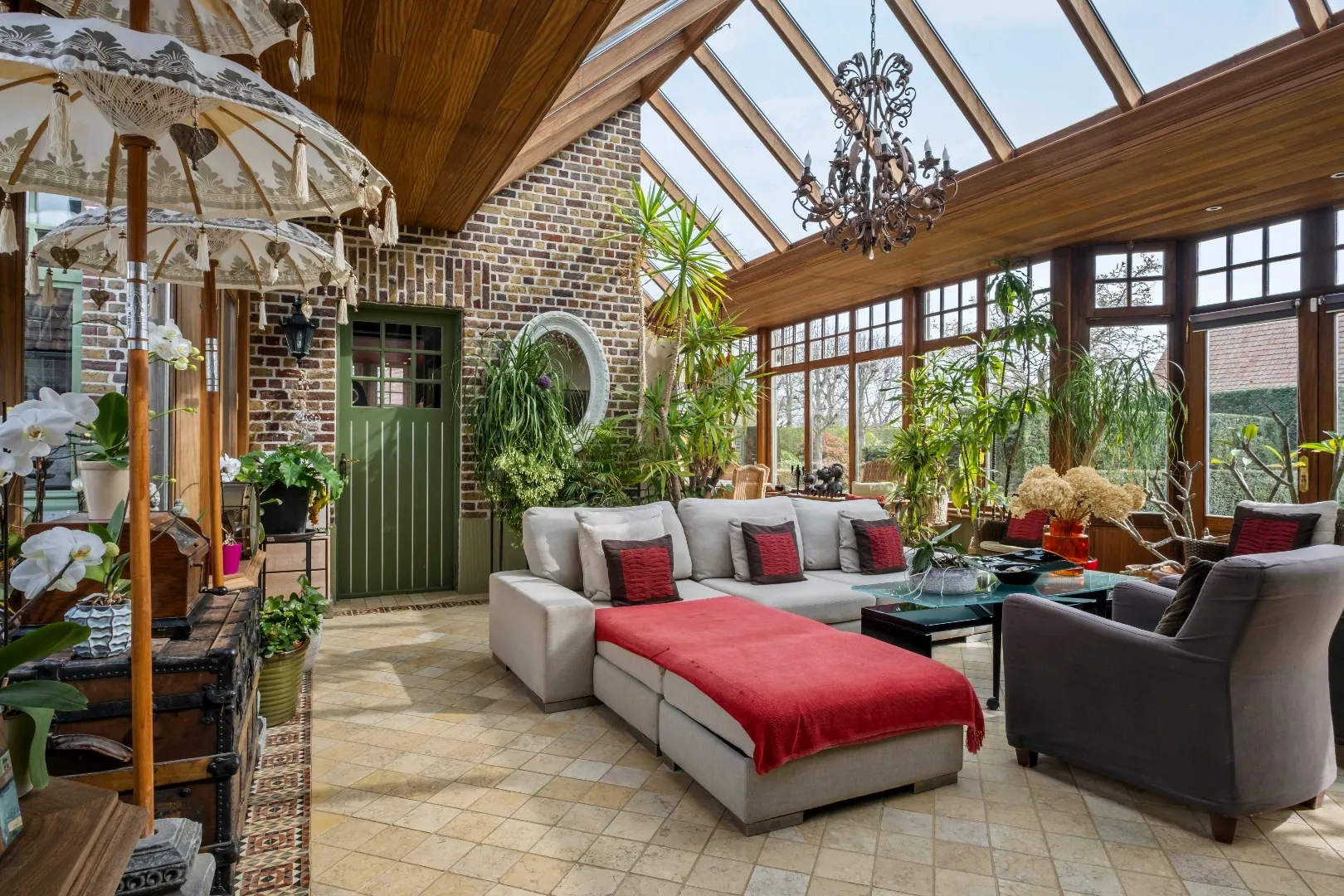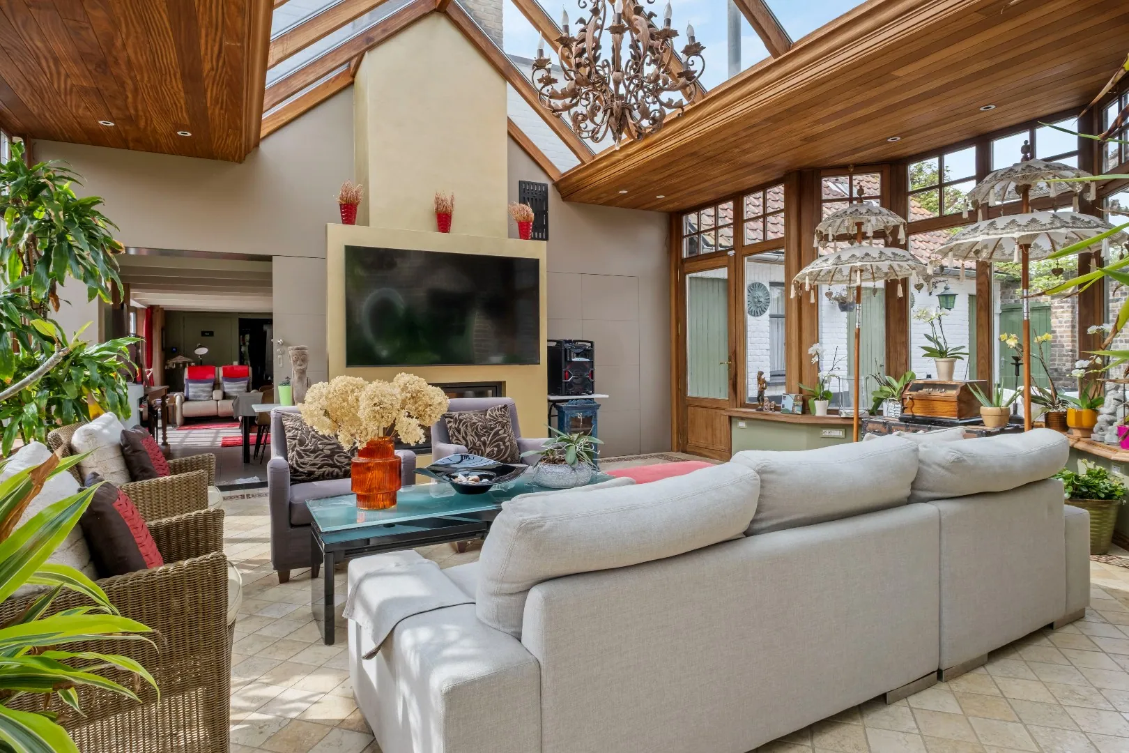 Aansluitend bevindt zich een charmante orangerie, ingericht met een ruime eetplaats en een aparte zithoek/lounge - perfect voor gezellige momenten in elk seizoen.