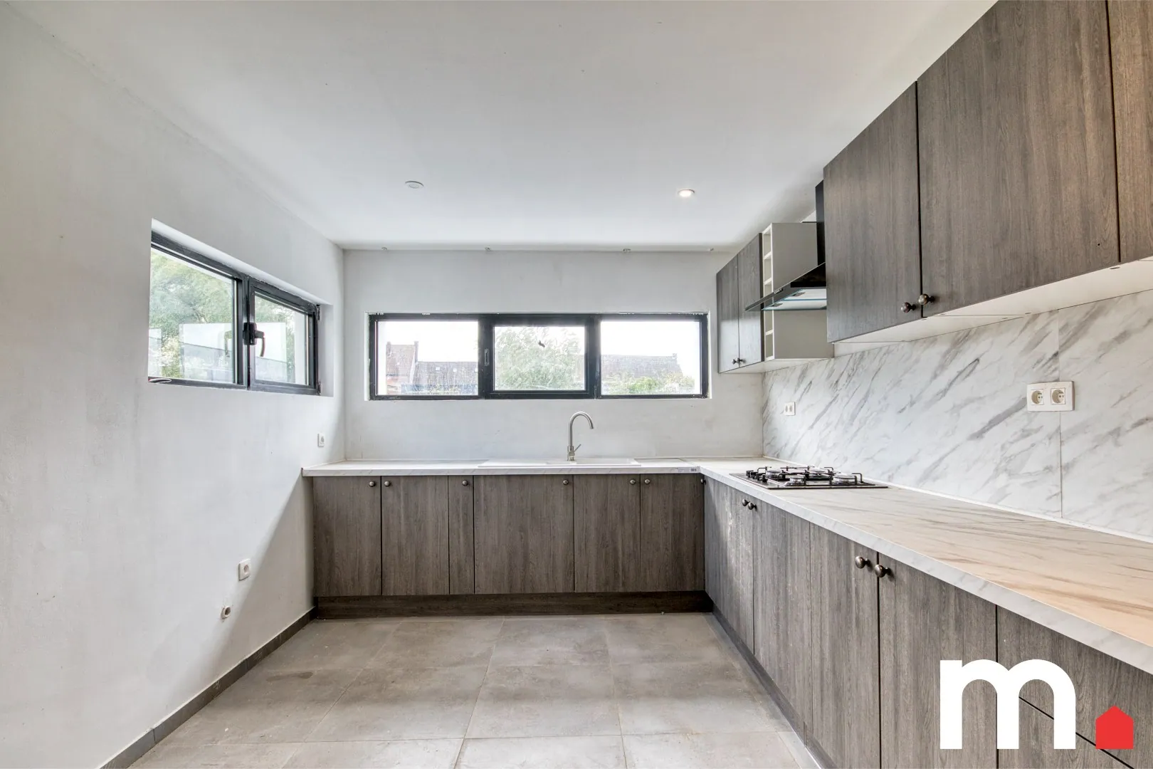 ✅ Volledig uitgeruste open keuken met Oven, microgolf, vaatwasser, Elektrisch koken, frigo, dampkap, spoelbak en veel kastruimte.(de keuken zal nog geplaatst worden)