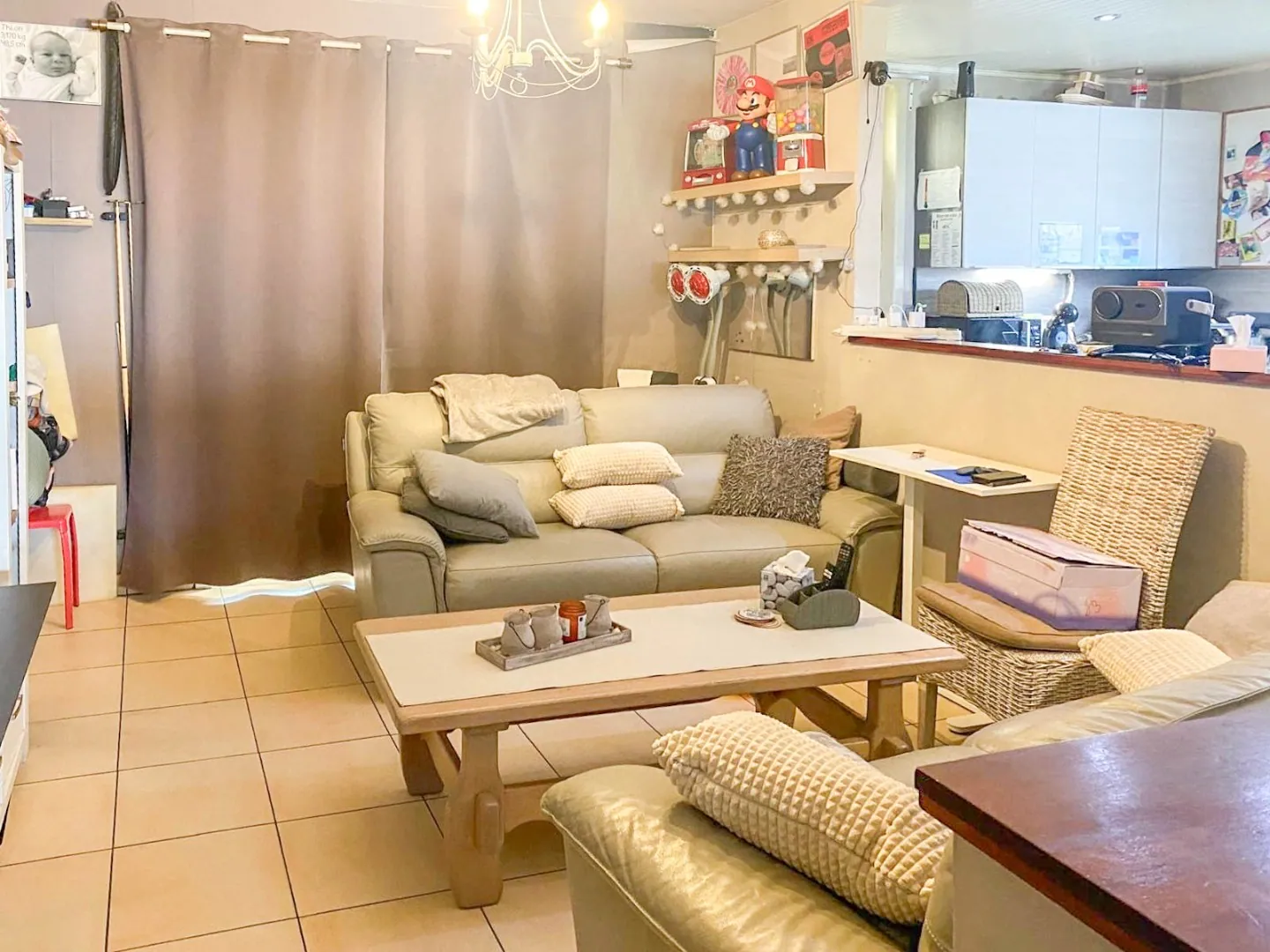 Indeling van de woning; inkom, open keuken, lichtrijke woon-en leefruimte, badkamer met ligbad en toilet, veranda, boven bevinden zich 2 slaapkamers waarvan 1 met een dressing.